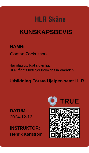 Alla TRUE -document är säkrade med blockchain-teknologi och kan verifieras som äkta. Klicka på verifieringsknappen bredvid dokumentet eller skanna QR-koden med din smartphones kamera. Ingen app krävs - dokumentets äkthet verifieras omedelbart.